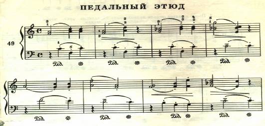 Если кому-то трудно или непонятно, как пользоваться педалью, у Е. Гнесиной в сборнике «Подготовительные упражнения к различным видам фортепианной техники» есть лёгкий и понятный «Маленький педальный этюд» на прямую педаль (см. приложение стр. 9).