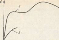 Рис. 1.1. Влияние напряжений на относительные деформации материалов: 1 —