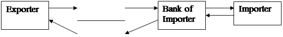 – экспортер, отправив товар, получает накладную и таможенную декларацию называемыми транспортными документами (TD). Он передает их своему банку с поручением получить платеж (Payment) по данному контракту против предоставления транспортных документов. Банк экспортера, устанавливая корреспондентские отношения с банком в стране импортера (ViaBorder), пересылает ему транспортные документы с поручением получить от импортера платеж по данному контракту против предоставления ему транспортных документов. Банк в стране импортера предоставляет импортеру эти документы в обмен на платеж по данному контракту и далее пересылает этот платеж в банк экспортера для зачисления денег на счет экспортера. Этот метод платежа имеет два недостатка: Во первых движение документов в одну сторону и движение денег в обратную сторону занимает значительное время, а во вторых может возникнуть такая ситуация, что TD пришли в банк импортера, а того финансовые проблемы и он не может их выкупить, но товар то уже едет. Поэтому этот метод платежа применяют при работе с проверенным контрагентом.