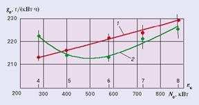 Рис. 1. Характеристики удельного расхода топлива в зависимости от мощности