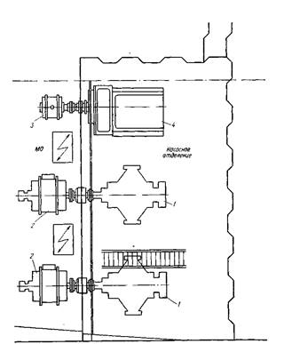 Рис. 101. Насосное отделение танкера грузоподъемностью 5000 т.