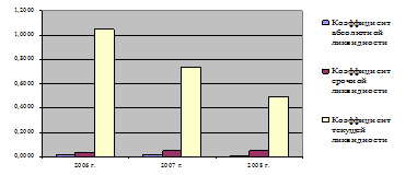 На исследуемом предприятии в течение 2006-2008 годов наблюдается несоответствие условий ликвидности – у ООО «Форсаж» недостаточно высоколиквидных активов для погашения своих обязательств.