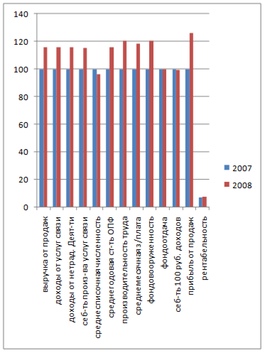 Анализируя основные экономические показатели производственной деятельности Богородского почтамта за 2007 – 2008 гг., наблюдаем рост доходов от реализации услуг, обусловленный увеличением средних доходных такс и изменением объема предоставляемых услуг. Выручка от продаж в 2008 году составляет 28619,80 тыс. руб., что на 15,7% больше, чем в 2007 году, при этом прибыль увеличилась на 26,2% при уровне рентабельности 7,4%. Причиной такой рентабельности является увеличение затрат на производство за анализируемый период. Рост затрат за 2007 – 2008 гг. составляет 15%. Наблюдается снижение себестоимости 100 руб. доходов на 0,6%. Проведенный анализ показал, что за анализируемый период произошло снижение количества жалоб со стороны населения, а также повышение спроса на предоставляемые новые услуги.