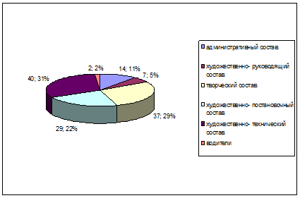 Среднесписочная численность работников, занятых театрально- зрелищной деятельность в 2003 году составила 122 человека.