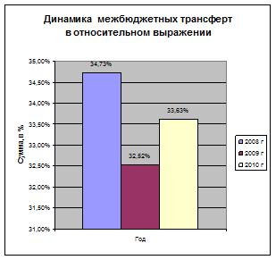 В 2010 году произойдут изменения доли расходов в процентном соотношении от общего объема расходов. Неизменными лидерами остаются межбюджетные трансферты и общегосударственные вопросы на 3 месте будет национальная безопасность и правоохранительная деятельность