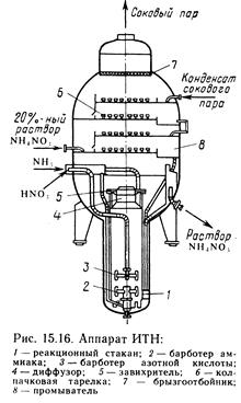 Теплота реакции (VIII) используется для частичного испарения воды из реакционной смеси (отсюда и название аппарата — ИТН). разница в температурах в разных частях аппарата приводит к более интенсивной циркуляции реакционной смеси.