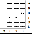 Перечислим все возможные варианты орбитальных размещений и спиновых комбина-ций 2-х электронов на трёх АО:  |