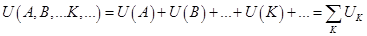 Если части системы (A,B,… K,…) не взаимодействуют между собою, то энергия системы аддитивна и является просто суммой энергий подсистем