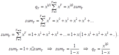 Если то сумма представляет собой убывающую геометрическую прогрессию. Это даёт возможность выполнить простые преобразования: