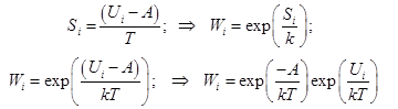 В разных микросостояниях энтропия и внутренняя энергия (Ui; Si) системы могут различаться, но неизменна их свободная энергия. Справедлива цепочка равенств:
