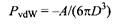 Сила Ван дер Ваальса включает несколько вкладов. Во-первых, квантово-механические дисперсионные взаимодействия. Второе слагаемое появляется как результат термически усредненного диполь-дипольного взаимодействия. Третий вклад обусловлен взаимодействиями индуцированных диполей. Ван-дер-ваальсовы силы действуют как между полярными, так и неполярными молекулами и мало зависят от природы вещества. Это отличает их от электростатических сил, величина которых может меняться на порядки при добавлении небольших количеств электролита. Наиболее прямой путь расчета силы Ван дер Ваальса заключается в предположении, что взаимодействие попарно аддитивно, - этот способ расчета известен как подход Гамакера. Взаимодействие двух бесконечных плоских стенок описывается как: