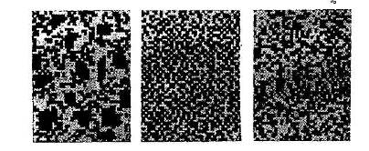 (утвореннязроблених або безперервних змішаних кристалів) або в певнійобласті концентрації (утворення змішаних кристалів з обмеженою розчинністю). Під утворенням змішаного кристала розуміють заміну компонента А компонентом В (або навпаки) у кристалічному стані. Виникаючий змішаний кристал (або твердий розчин) є гомогенним і приймається за одну фазу. Процес утворення змішаного кристала на атомному рівні можна наочно представити за допомогою мал. 1. Атоми компонента А, наприклад Сu, безупинно й статистично заміняються атомами компонента В, наприклад Ni, поки, нарешті, не виходить у підсумку ґрати чистого компонента В. Тому розподіл розчиненого компонента в змішаному кристалі може поступово змінюватися. Наприклад, Лавес розглядав утворення змішаного кристала, аналізуючи можливі розподіли 50% чорних й 50% білих квадратів (мал. 2). Розподіл стороннього компонента в змішаному кристалі може перебувати на грані статистичного розподілу, наприклад за схемою, б або в, мал. 2, Зі схематичного зображення треба, що в стані б відбувається агрегація (скупчення) атомів одного сорту. У цьому стані можна виявити відому тенденцію до розпаду вихідного гомогенного змішаного кристала. Фактичний розподіл вирішальним образом залежить від умов охолодження.
