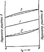 Поступове заміщення компонента Л на В у кристалах зутворенням безперервного ряду твердих розчинів приводить у загальному до безперервної зміни параметрів ґрати. Лінійназміна констант ґратиз концентрацією називається правилом Вегарда. У процесі заміщення ґратизбільшими відстанями між атомами стискується, а ґратиз меншими відстанями розширюються. Тому, знаючи состав змішаного кристала й параметри ґрат чистих компонентів, можна обчислити періоди ґрат змішаного кристала. Відомі численні відхилення від цього правила. Параметри ґрат, певні експериментально, можуть бути й менше, і більше, ніж знайдені підсумовуванням за правилом Вегарда (мал. 4). Причиною відмінювань може бути розходження валентностей обох компонентів й їхньої спорідненості до електрона.