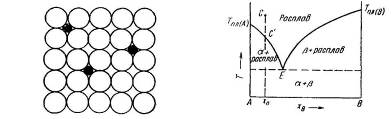 Рис. 6. Твердий розчин впровадження Рис. 7. Евтектична діаграма стану