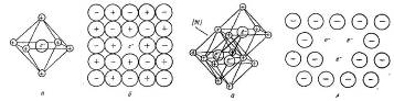 при світловому опроміненні шляхом розкладання двох F-центрів зутворенняманіонної вакансії по реакції 2F >F' + вакансія. Із трьох F'-центровскладається R-центр, що зображен на мал. 11. Цібільше складні центри можна одержати, наприклад, за допомогою спеціальних фотохімічних реакцій з F-центрів.