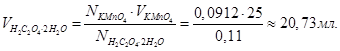 Об’єм розчину щавлевої кислоти, що піде на титрування 25,00 мл