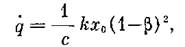 В предположении второго порядка реакции и пропорциональности скорости превращения £1 интенсивности тепловыделения q зависимость q($) должна иметь вид