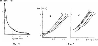 с помощью функции (1). Это проделано на рис. 2, из которого видно, что если такая аппроксимация вполне удовлетворительна для большей части процесса на его второй (заключительной) стадии, то она не годится для первой стадии. Справедливо и обратное. Это означает, что константа к не может быть постоянной для всего процесса.