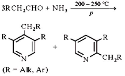 У 1906 р. Чичибабин відкрив реакцію циклоконденсації альдегідів з аміаком (названу його ім'ям), що приводить до утворення ряду гомологів піридину.