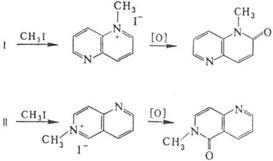 у лужному середовищі до N‑алкіл-a‑нафтиридинів, наприклад: