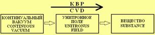 Рис.1. Схема взаимосвязи континуального вакуума, конвергирующего поля (унитронного поля), Максвелла поля и вещества.
