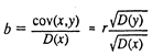 Иначе можно записать, что (где r коэффициент корреляции х и у). Таким образом, коэффициент регрессии пропорционален показателю ковариации и коэффициенту корреляции х и у, а коэффициенты этой пропорциональности служат для соизмерения перечисленных разноразмерных величин. Оценки a и b, очевидно, являются линейными относительно yi (если xi считать коэффициентами) - выше об этом упоминалось.