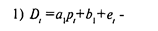 Экономическая модель как система одновременных уравнений может быть представлена в структурной или в приведенной форме. В структурной форме ее уравнения имеют исходный вид, отражая непосредственные связи между переменными. Приведенная форма получается после решения модели относительно эндогенных (внутренних) переменных, то есть выражения этих переменных только через экзогенные (задаваемые извне) переменные и параметры модели. Например, в модели спроса и предложения эндогенными являются переменные pl, Sl, Dl, ее параметры – a1, a2, b1, b2, а экзогенных переменных в ней нет. Таким образом, в приведенной форме переменные pl, Sl, Dl, должны выражаться только через параметры модели. Подставив Sl и Dl из (1) и (2) в (3), получаем