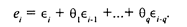 Это формула для преобразования МА q-го порядка, или MA(q); МА(1), например, имеет вид еi = єi + q1єi-1. Параметры qi, как и в случае авторегрессионного преобразования, могут оцениваться итерационными методами.