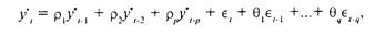 где {rр^} и {q9^} - неизвестные параметры, и е - независимые, одинаково нормально распределенные СВ с нулевым средним. Величины у* представляют собой конечные разности порядка d величин у, а модель обозначается как АRIМА(р,d,q).