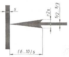 Товщина плоскої деталі позначається буквою s з наступною вказівкою розмірного числа. Довжина виробу позначається малою буквою латинського алфавіту - L (ель).