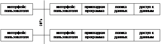 Рис. 11. Архитектура приложения типа клиент-серверВ случае архитектуры клиент-сервер сервер баз данных должен обладать высокой производительностью.
