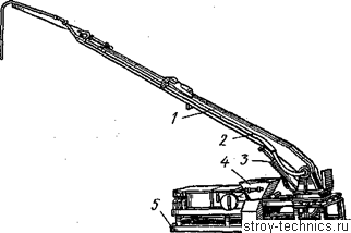 Бетоноукладчик ЛБУ-20 с одной стоянки может подать бетонную смесь в любую точку под стрелой на площади 800 м2. Производительность бетоноукладчика 25 м3/ч.
