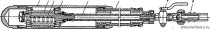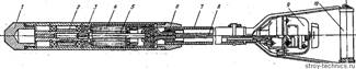 Для удобства загрузки бадья снабжена приемным лотком 5 длиной 2800 и шириной 2700 мм. Диаметр бадьи 2850 мм, высота вместе с траверсой 5600 мм. Масса порожней бадьи 5640 кг, с бетонной смесью — 24840 кг.