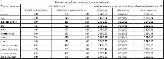 Основные физико-механические свойства древесины