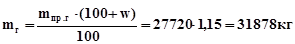 =1,2·25000·1,13/15,1=2245 г, або 2,24 кг.