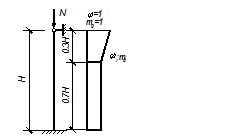 φ – коэффициент продольного изгиба, определяемый по СНИП II-22-81 таб.18 в зависимости от гибкости элемента λh