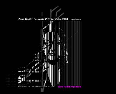 Титульна сторінка сайту http://www.zaha-hadid.com/ відкриваюча огляд, вирішена в напруженій чорно-білій гаммі з маленьким акцентиком холодного фіолетового тону. Композиція нарочито диссимметричная, нарізаний нерівномірними смужками портрет виглядає розпливчатим і мерехтливим. В цілому враження тривожне і в той же час якесь презирливе. Легко уявити собі, що перед нами – обкладинка «готичного романа».
