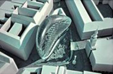 Будівля «Крапля» (Blob), спроектоване Захой Хадід на площі Червіта в будапешті. В оточенні барочних будов, будівля дійсно нагадує чи те краплю ртуті, чи то нікельованого слизняка (візуалізація узята з сайту