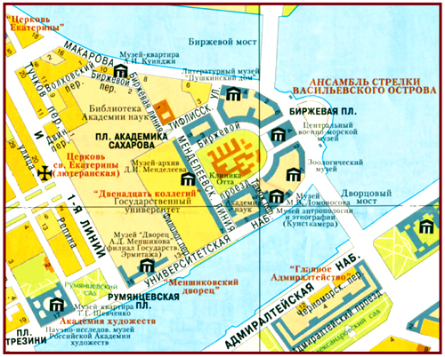 Стрелка Васильевского острова уже два столетия остается любимым местом праздников и прогулок петербуржцев. Издалека, с воды и с противоположных берегов Невы ансамбль Биржи выглядит великолепной и торжественной панорамой, которая стала одним из символов Санкт - Петербурга.