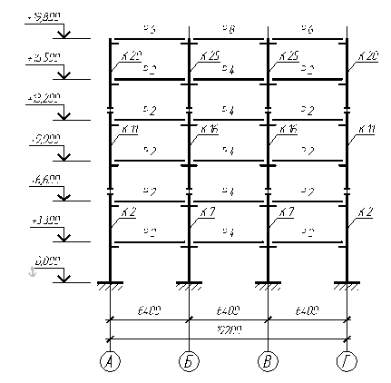 Поперечная жесткость здания обеспечивается работой многоэтажных поперечных рам: колоннами, жестко заделанными в стаканы фундаментов и жестким сопряжением колонн с ригелями.