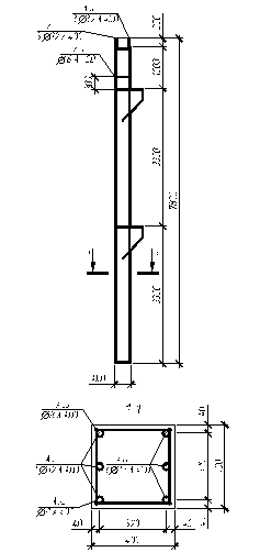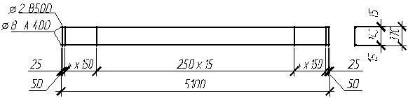 - в поперечном сечении в пролете 2 стержня диаметром dsw