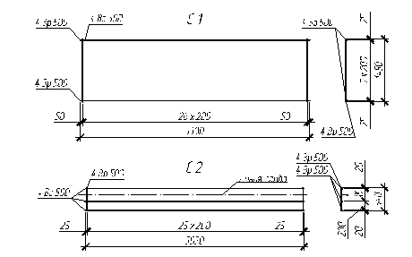- в поперечном сечении у опор 2 стержня диаметром dsw
