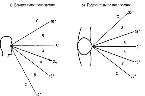 Sn — ось зрения с полем зрения от 15° до 35° по горизонтали