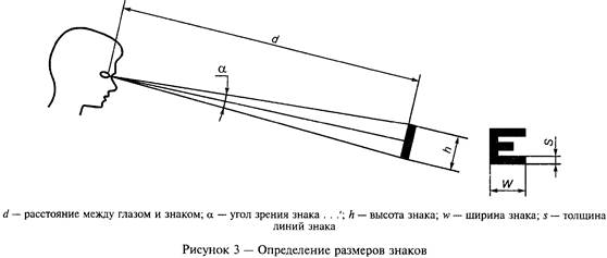 На рисунке 3 даны основные сведения о размерах знаков и пропорциях. Следует иметь в виду, что расстояние между глазом и знаком dявляется только одним из решающих факторов, определяющих размеры знака. На выбор размеров знаков влияют совместно освещение и контрастность между знаком и задним планом и читаемость знака.