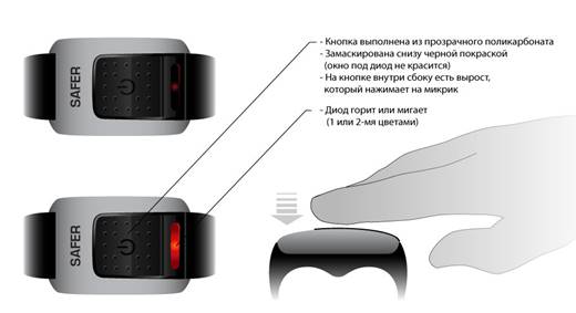 Данный прибор заблаговременно предупреждает пользователя о возможном засыпании. Он представляет собой браслет и перстень, которые надеваются на руку водителя. Индикаторы запоминают состояние водителя на основе физических показаний кожи. При отклонении от нормы в сторону релаксации прибор подает сигналы, похожие на звуки будильника. Если водитель не отреагировал на сигналы нажатием кнопки, прибор автоматически включает аварийную сигнализацию и ближний свет фар. Конструкция устройства представлена на рис.2.