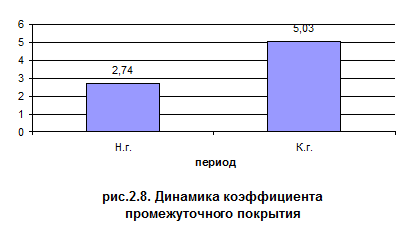 Анализ представленных данных в таблице 2.11 и 2.12 позволяет сделать вывод об устойчивом финансовом развитии предприятия, как на начало года, так и на конец. Наблюдается небольшое снижение финансовой независимости на конец анализируемого периода. Если на начало года на 1 рубль всех источников средств 0,84 р. приходилось на собственный капитал, то к концу года эта цифра составила 0,74 р.