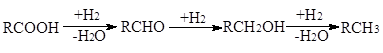 Многие процессы гидрирования протекают через ряд промежуточных стадий. Так, карбоновые кислоты, альдегиды и кетоны восстанавливаются последовательно в спирты и углеводороды: