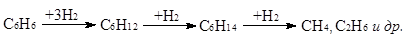При дальнейшем развитии этих реакций может произойти гидрогенолиз органического соединения с образованием нежелательных продуктов деструкции