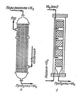 а) трубчатый реактор; б) колонна со сплошными слоями гетерогенного катализатора и охлаждением холодным водородом