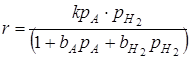 Процессы гидрирования обычно осуществляются в условиях, когда равновесие реакции значительно смещено вправо и можно пренебречь обратной реакцией дегидрирования. Кроме того, насыщенный продукт гидрирования имеет небольшой адсорбционный коэффициент и поэтому обычно не входит в кинетическое уравнение процесса. И, наоборот, при высоком давлении становится существенной сорбция не только исходного вещества, но и водорода.